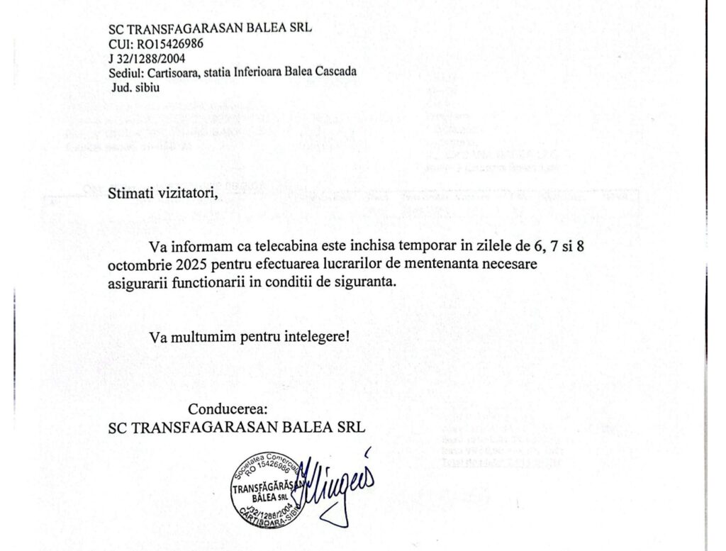 Tel. Telecabina: +40725210610